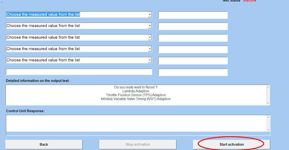 • Двигатель выключен; • Зажигание включено; • Не нажимайте на педаль газа; • Напряжение аккумулятора должно быть больше 11 V; • В блок управления двигателя отсутствуют какие-либо ошибки.