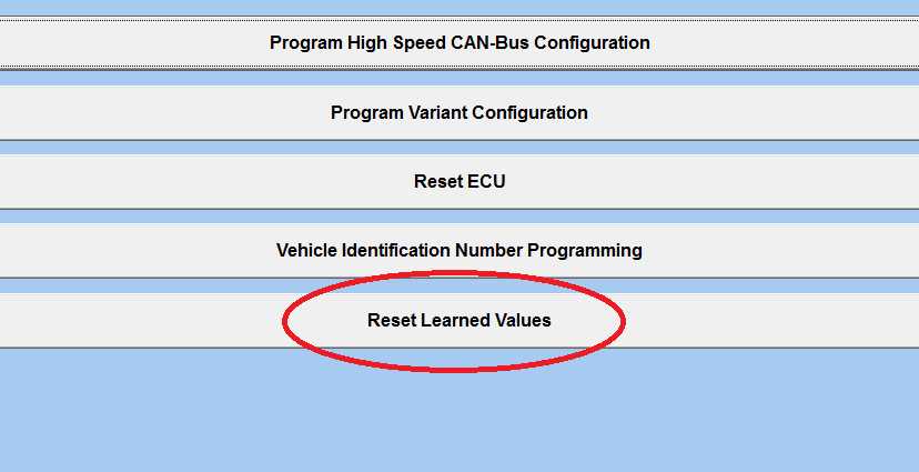 • Выбираем ваш двигатель; • Нажимаем на кнопку «Special function»; • Далее нажмите на «Reset learned values»; • После чего нажмите на «Пуск».