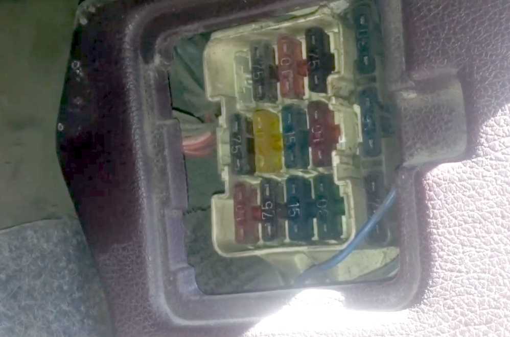 Он расположен за крышкой слева и под рулевым колесом. Также есть один предохранитель в правом боковом креплении, и для доступа к нему необходимо снять панель под рулевым колесом.