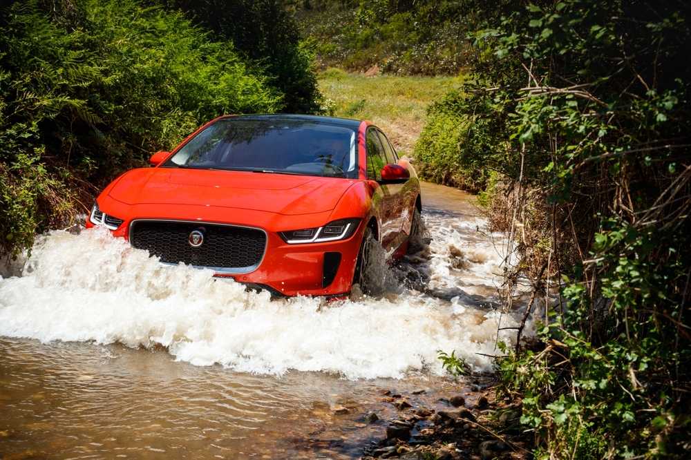Jaguar I-Pace получил «внедорожную» электронику, как у кроссовера F-Pace — это системы ASPC (круиз-контроль для пересеченной местности) и AdSR (режим для скользких поверхностей). А также способен преодолевать броды глубиной до 500 мм