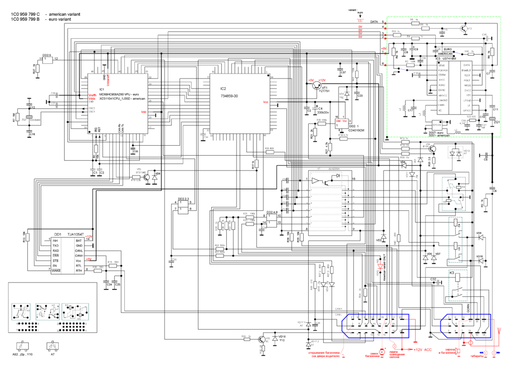 Электрическая схема и распиновка блока комфорта