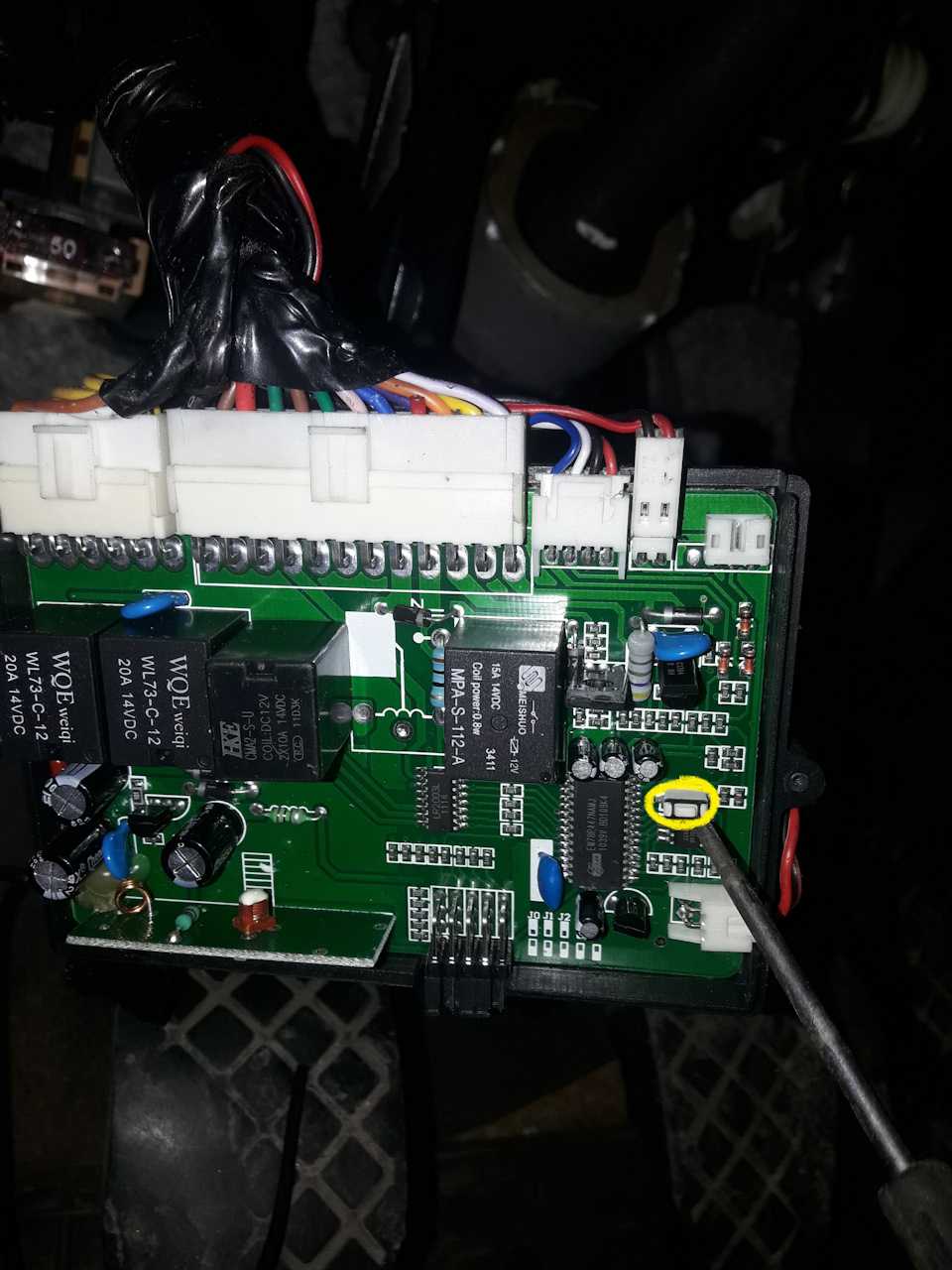 Все таки вчера поздно почти ночью созвонился с ним и решали, что с блоком делать … В итоге где то Strong2206 вспоминает, что видел писали —бывает кнопка в Китайских сигнализациях внутри блока именно на самой плате. Я разобрал блок сигнализации и точно на самой плате есть кнопка.