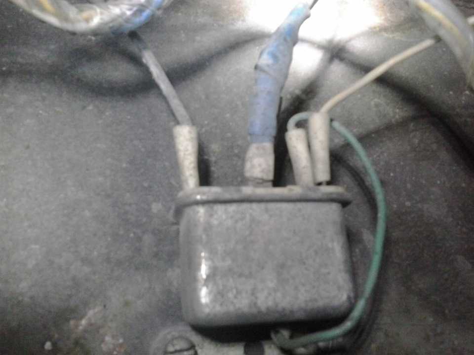 Так выглядит само РС-502.Зеленый и белый провода рядом, справа на фото — управляющие, толстый серый и толстый заизолированный — силовые провода. Зеленый идет на массу, белый идет на ключ зажигания, толстый серый идет на рабочую обмотку втягивающего реле, толстый заизолированный — это плюсовой провод приходящий от стартера и идущий далее на добавочное сопротивление.