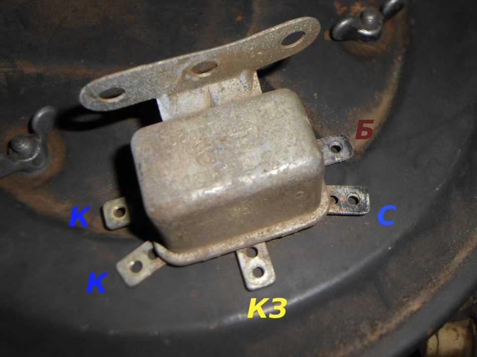Любой из контактов К — масса, второй контакт К — провод ведущий к ключу, КЗ — провод ведущий к добавочному сопротивлению, Б — провод идущий к плюсовому контакту стартера, С — провод ведет к обмотке втягивающего реле стартера.
