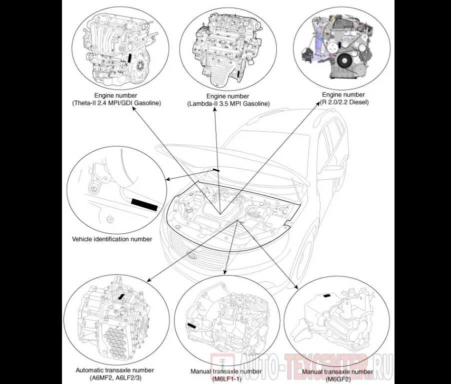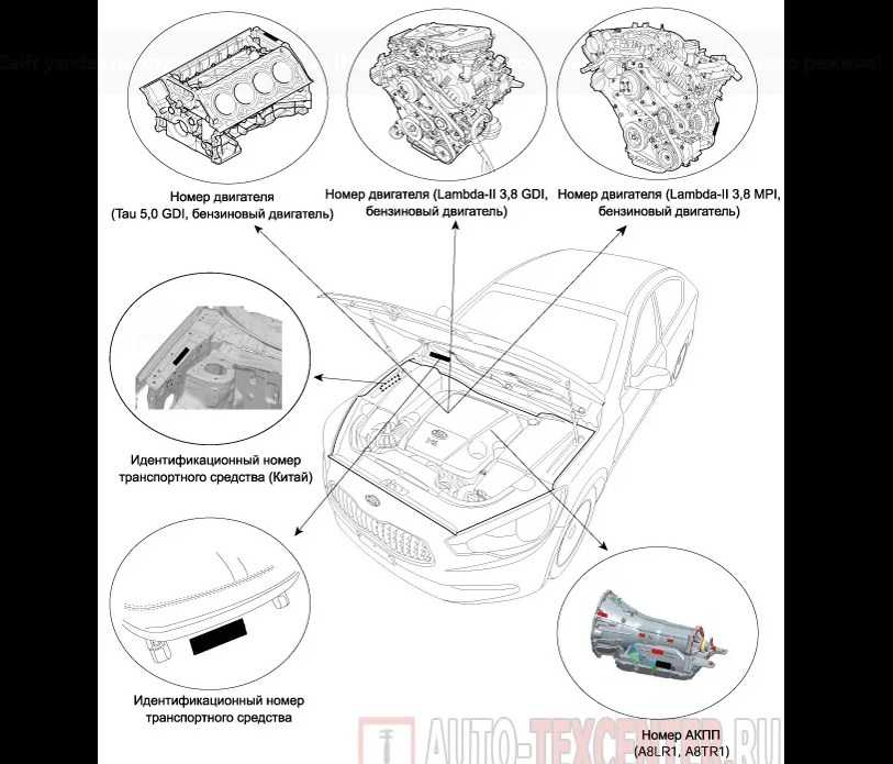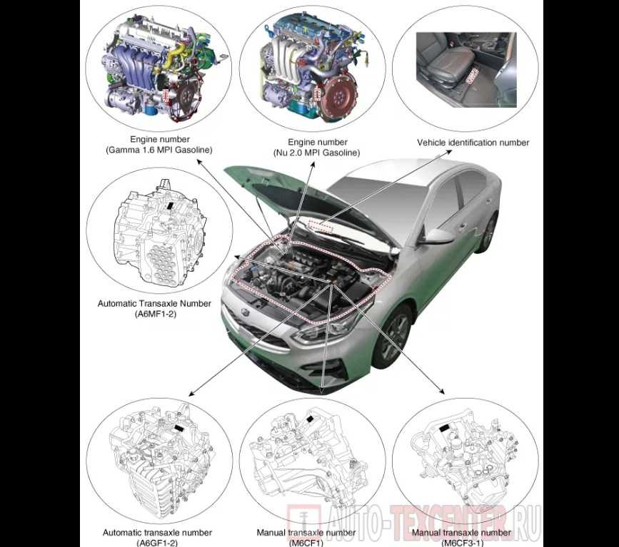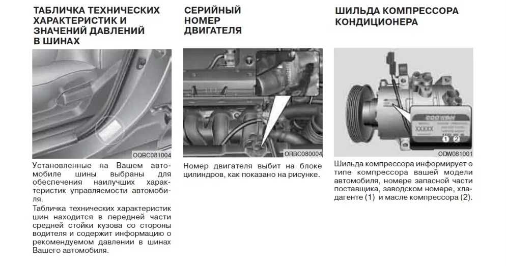 Расположение номера двигателя на различных моделях автомобилей Kia
