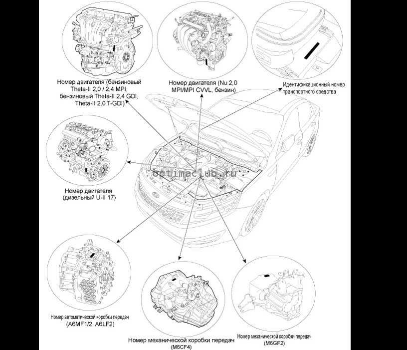 Расположение номера двигателя на Kia Optima