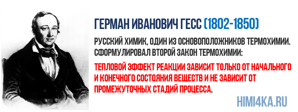 Аддитивность теплот реакций вытекает непосредственно из первого закона термодинамики: изменение энергии или энтальпии между двумя состояниями системы зависит только от самих этих состояний, а не от того, каким образом осуществляется переход между ними. Следовательно, разность между энтальпиями реагентов и продуктов, т.е теплота реакции, должна зависеть только от исходного и конечного состояний, а не от того конкретного пути, по которому следует реакция. Это утверждение носит название закон аддитивности теплот реакций (закон Гесса).