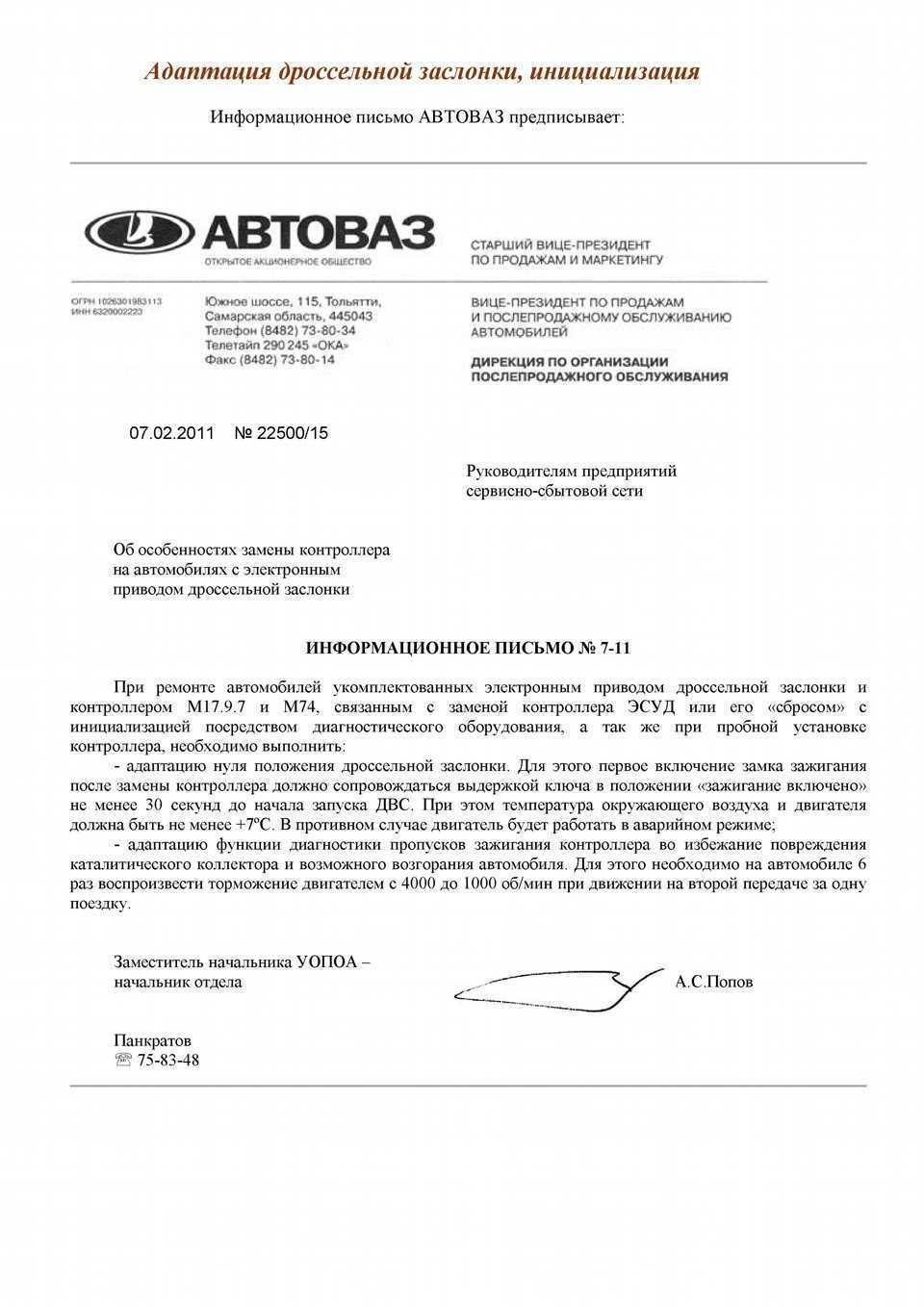 Так же наткнулся на интересное информационное письмо Автоваза №7-11: