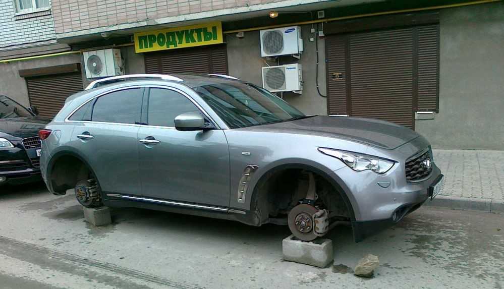 Бывает, что колёса снимают даже на стоянке у дилеров, но это редкость