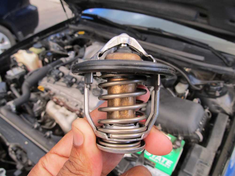 - Следующей причиной, по которой из дефлекторов дует не горячим, может стать неисправный термостат. Продиагностировать можно, заведя автомобиль и подождав 5 – 7 минут, попробовать поверхность до термостата и после него, они должны быть разной температуры (до термостата тёплой, а после холодной).