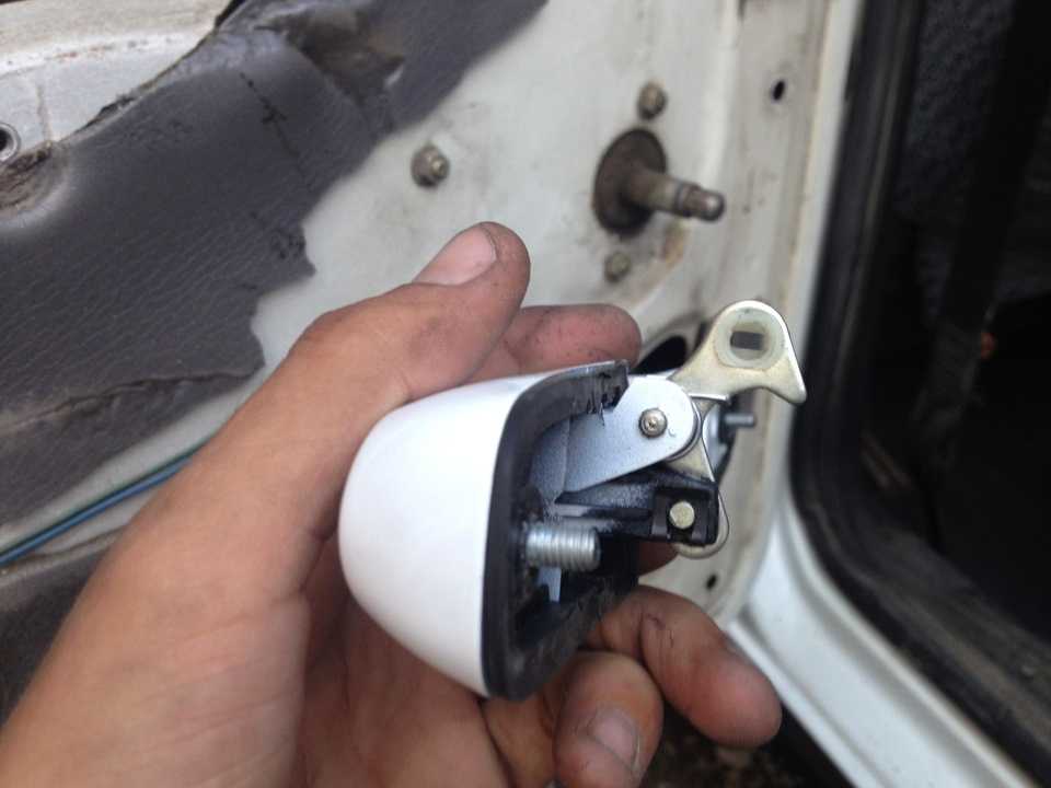 Если быть кратким, то после установки первой ручки я понял о чем говорил сосед про длину тяг и понял одну вещь — каждая ручка должна ставиться на «свою» дверь, несмотря на внешнее сходство. Водительскую вы не спутаете с любой другой — в ней отверстие под личинку замка, а вот остальные нужно ставить таким образом, чтобы крючок на самой ручке, к которому крепится тяга был вверху. На фото ниже ручка для задней левой двери. Если же эту ручку ставить на правую сторону, то ее придется перевернуть и крючок будет снизу. Соответственно размер самой тяги будет слишком длинный и придется гнуть тягу, чтобы одеть ее к замку в двери.