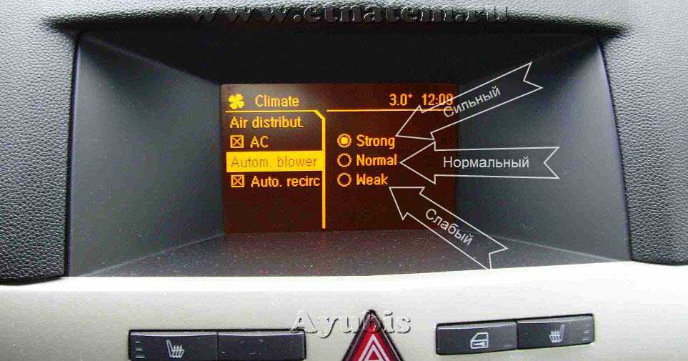 Регулировать силу воздушного потока можно не только лишь при помощи круглой ручки регулировки, да и в меню климат-контроля. Как найти утечку кондиционер 2,5 л на 100 км; как проверить генератор. Попасть в меню можно нажав ручку регулировки направления воздушных потоков. Как включить кондиционер — youtube. В пт «Autom blower» изберите один из 3-х уровней силы воздушного потока: Strong (сильный напор), Normal (средний) и Weak (слабенький). как включить кондиционер опель астра н 1.8 ат cum sa activa?i aerul condi?ionat opel astra h. Сильный рекомендуется только для зимы, чтобы резвее прогревать салон автомобиля.