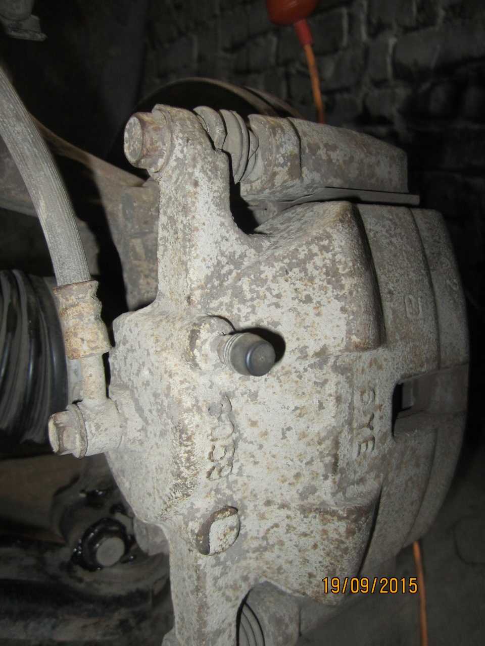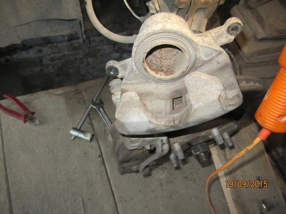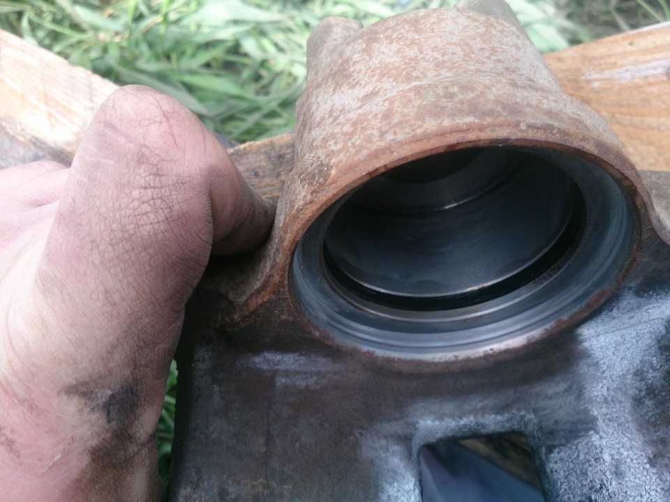 Далее фоток нет.по причине сдохшего фотика( Ну продолжим тогда только одними буквами. Нажимаем несколько раз на педель тормоза, цилиндр суппорта у нас высовывается, смотрим его состояние, и если нужно очищаем его от грязи и ржавчины(у меня он был на удивление чистый, обтер его губкой для мытья посуды — грубой стороной, и цилиндр с легкостью отразил мой, перекошенный от усердия лик)) Затем очищаем посадочное место пыльника, и вставляем новый пыльник на место. Далее нужно вдавить цилиндр, у меня это быстро получилось струбциной (можно большим газовым ключом).И собираем все в обратном снятию порядке. На всё про всё минут 30