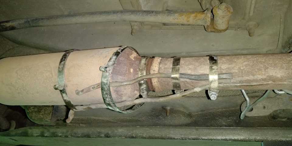 Осмотреть стыковые соединения — нет ли утечки газов. Пошатать глушитель рукой — он не должен сильно отходить со своей оси.
