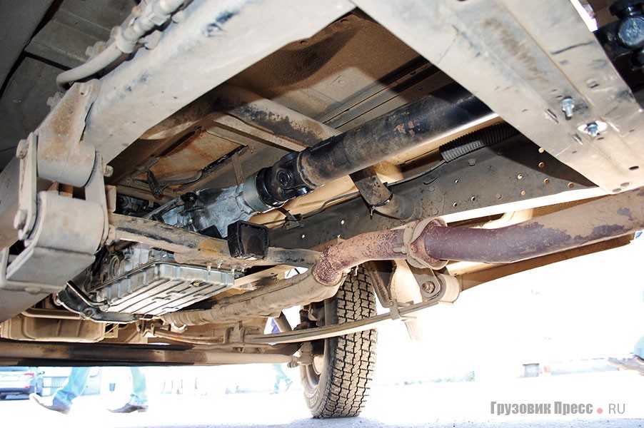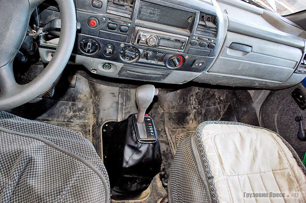 Но его работу уже не терпится проверить в движении. Для этого перевожу селектор АКП в положение Drive и отпускаю педаль тормоза, и машина подобно легковушке «на автомате» начинает двигаться без нажатия на акселератор, обеспечивая приемлемую скорость для аккуратного маневрирования в тесных дворах. Но, выехав за пределы территории сервисного центра, японский силовой агрегат демонстрирует другие стороны своего характера: разгонная динамика даже при вполовину нажатой педали акселератора впечатляет. Так разгоняются современные легковушки, не обременённые рамой, задним мостом и 5-метровым тентовым кузовом. При желании резко стартовать или совершить максимально быстрое ускорение под педалью акселератора есть кнопка «кик-даун», выводящая мотор на максимальную отдачу и держит обороты в диапазоне 4,5–7 тысяч. В таких режимах даже с неоригинальной выхлопной системой, звук мотора JZ не спутаешь ни с чем.