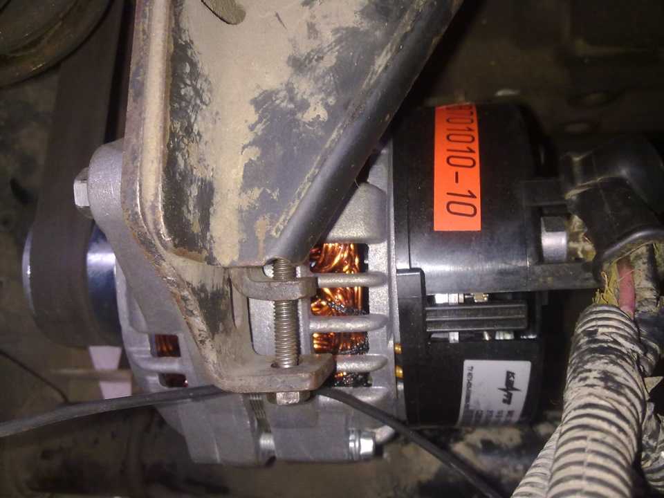 Ключом «на 10» отворачиваем гайку крепления проводов к выводу «В+» и снимаем их. Снимаем ремень генератора, отворачиваем регулировочный болт генератора и отворачиваем фиксирующую гайку