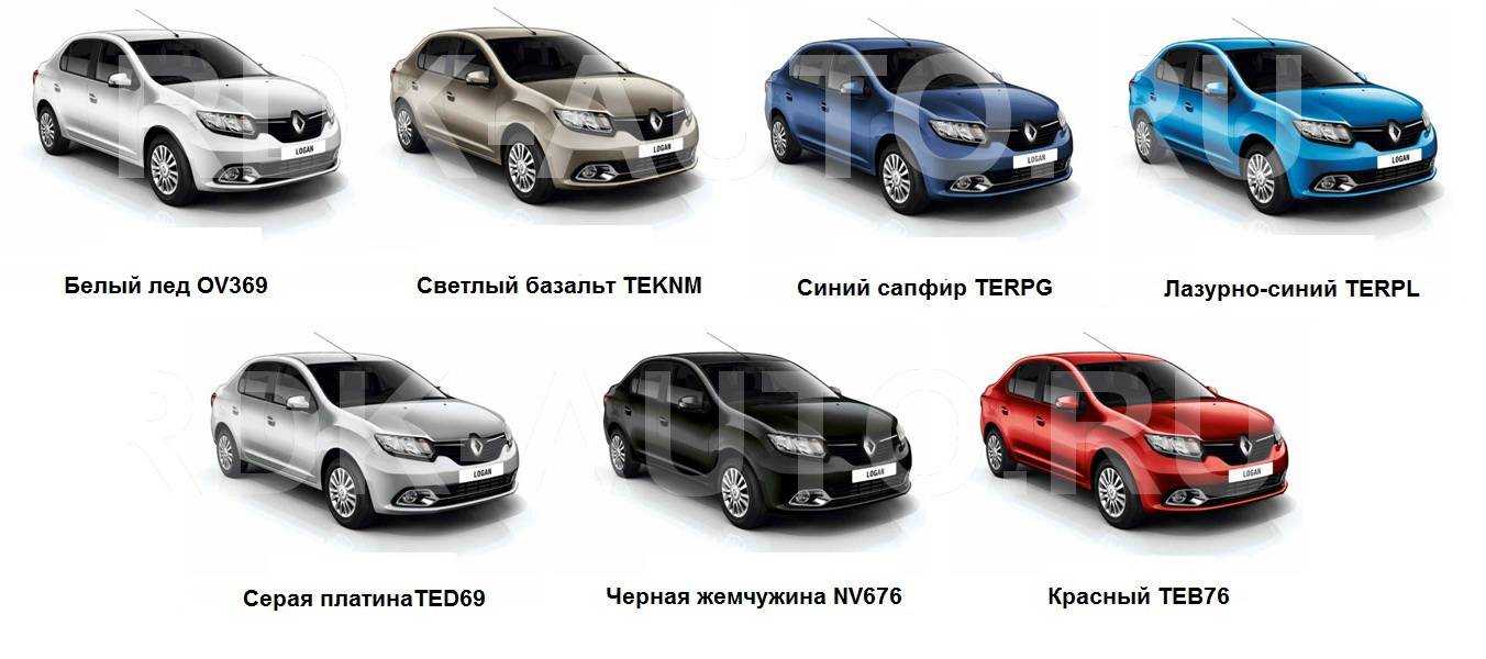 На Рено Логан 2 поколения используются следующие шифры красок с указанием маркировки цветов: