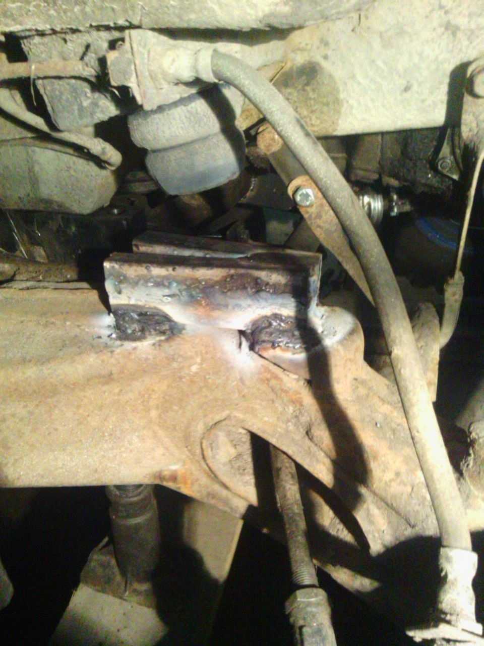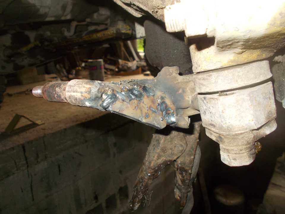 Шнивовские амортизаторы есть немного толще, чем обычные луазовские, что создает проблемы в делении пространства с полуосью и вилкой крестовины, если между ними стоит проставка. Я решил данную проблему переносом нижнего крепления амортизатора вперед на 3 см. Никаких дополнительных вставок не вваривал, просто отрезал и тупо наплавил нужную длинну полуавтоматом.