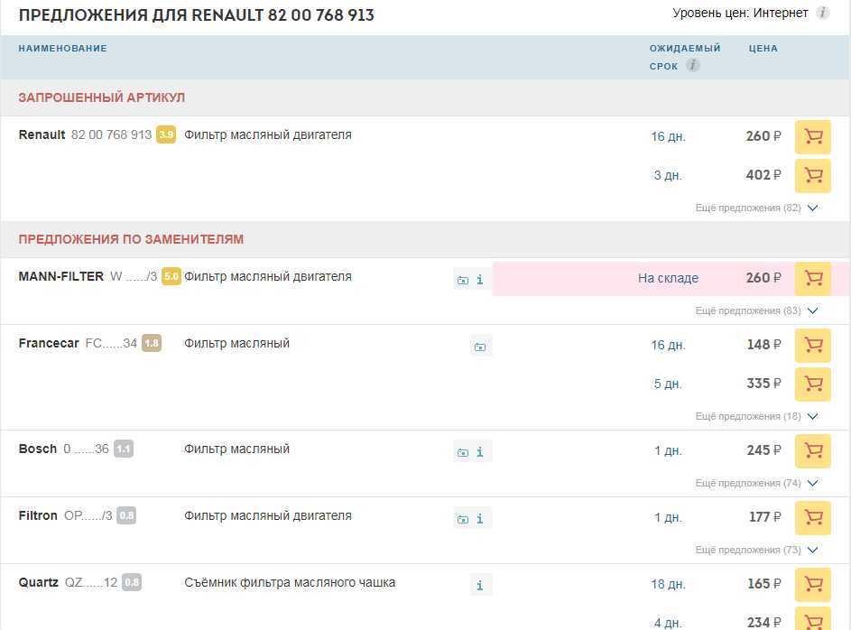Если говорить о фильтре, его каталожный номер 7700274177. Он подходит для всех моделей моторов. Также сам производитель Renault предлагает аналог 8200768913. Стоимость оригинала составляет 200-300 рублей. Если ищете что-то дешевле, то выбирайте между: