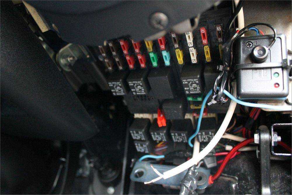 К второму контакту предохранителя подключил маму обжато производителем зеленого провода от колодки реле клемма Предохранитель тщательно замотал изолентой и прикрепил к одному из жгутов. Нюанс — для предохранителя заранее нужно купить колодку с проводами лучше изолированную, с крышкой , а также заранее купить сам предохранитель.