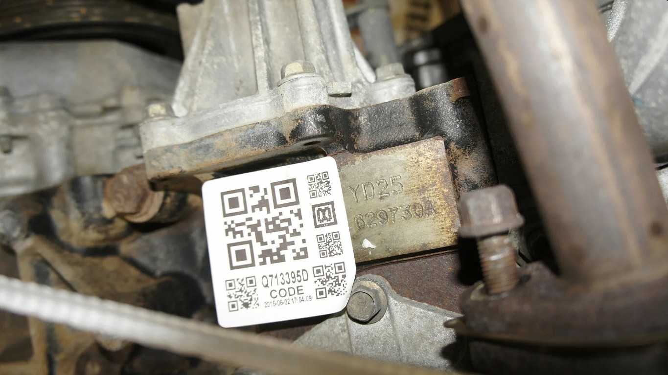 Расположение номера двигателя на Nissan Murano, Navara, Pathfinder: