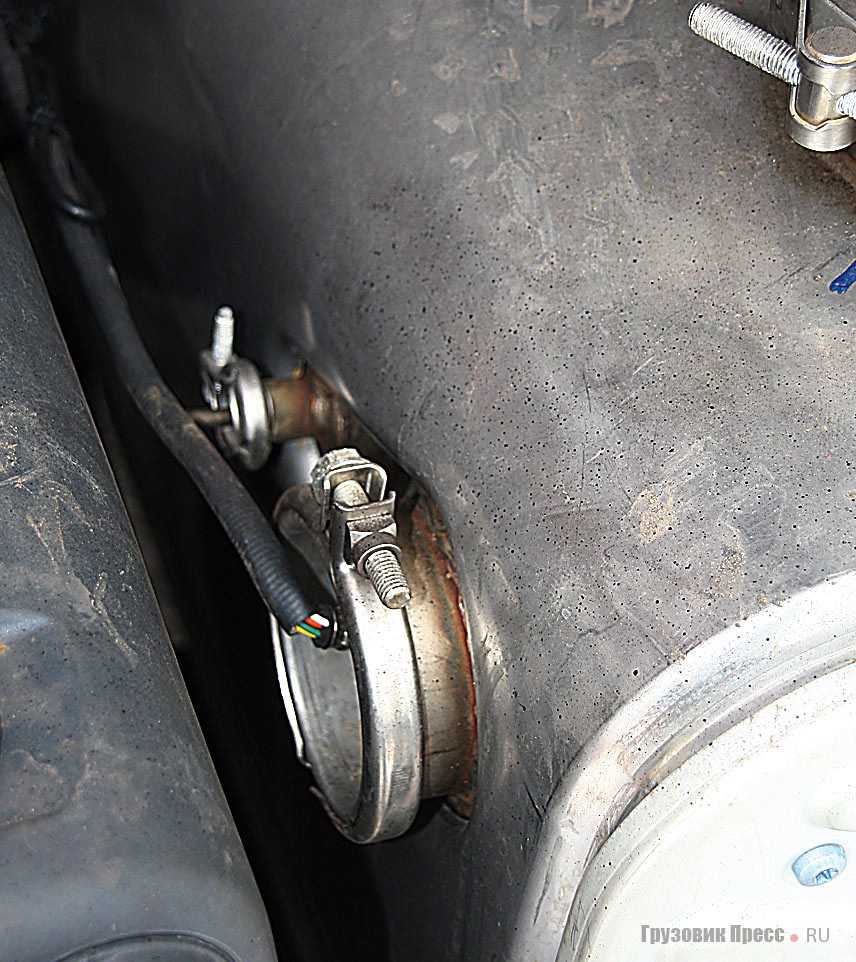 В комплектации самосвального шасси MAN TGS 41.400 8×4 BB-WW заранее предусмотрели верхнюю выхлопную трубу, выходящую из глушителя вдоль задней стенки кабины, чтобы облегчить задачу отбора выхлопных газов на кузов после глушителя. С одной стороны, такое конструктивное решение сильно упростило выхлопную систему самосвала, так как в этом месте потребовалось сделать лишь необходимый отвод (как можно ближе к глушителю, чтобы не растерять драгоценное тепло) и поставить переключающую задвижку кузов/выхлопная труба для перехода на летнюю или зимнюю эксплуатацию. С другой стороны, все эти дополнительные трубы и задвижки заняли слишком много места в пространстве между кабиной и кузовом, где его и так мало.