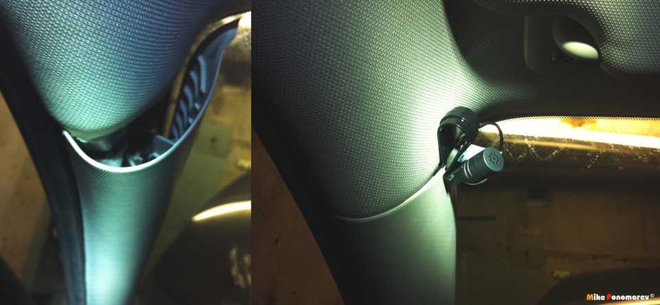 Остается немного. Антенны, USB, Wi-Fi, кабели камер и микрофон! Разбираем обе стойки (можно просто чуть-чуть поддеть, не снимая полностью):В одну стойку запихиваем GPS антенну, в другую — микрофонный кабель.