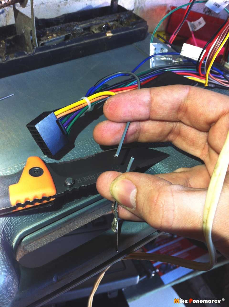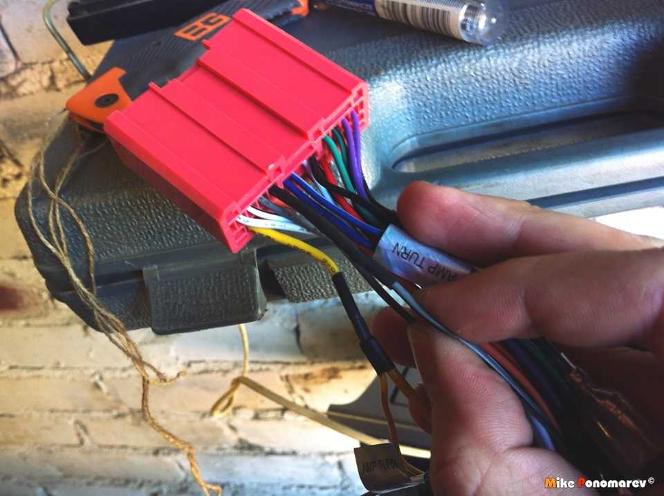 Лампочка или тестер, рассчитанный на 15 В и более, подключается к корпусу магнитолы и поочередно к оставшимся шнурам после включения устройства. Если стрелка отклонится, а лампочка загорится, то провод предназначен для питания антенны или дистанционного управления усилителем. Все распознанные по цветам кабели необходимо пометить понятным образом.