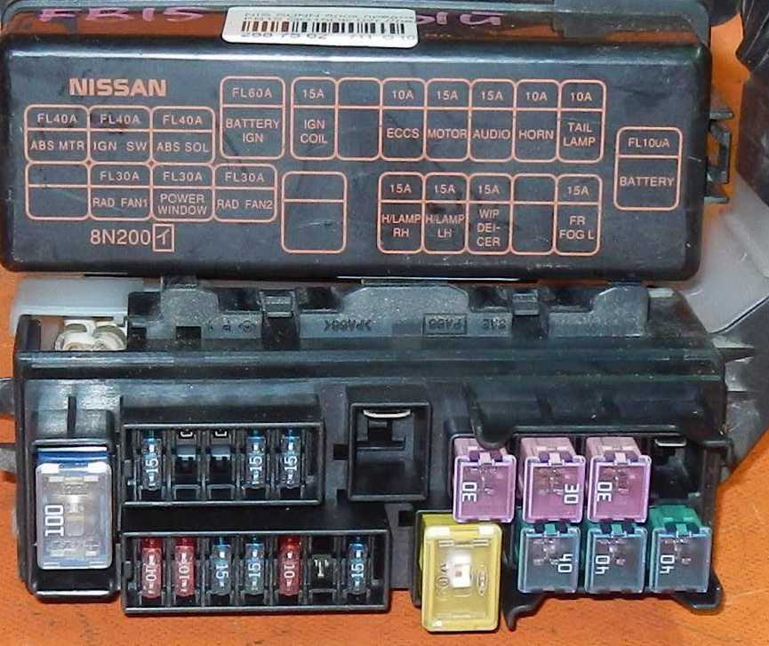 В предохранителях, используемых на Nissan Sunny FB15, присутствует плавкая вставка, помещенная в пластиковый корпус с металлическими контактами для прямой установки в монтажный блок.