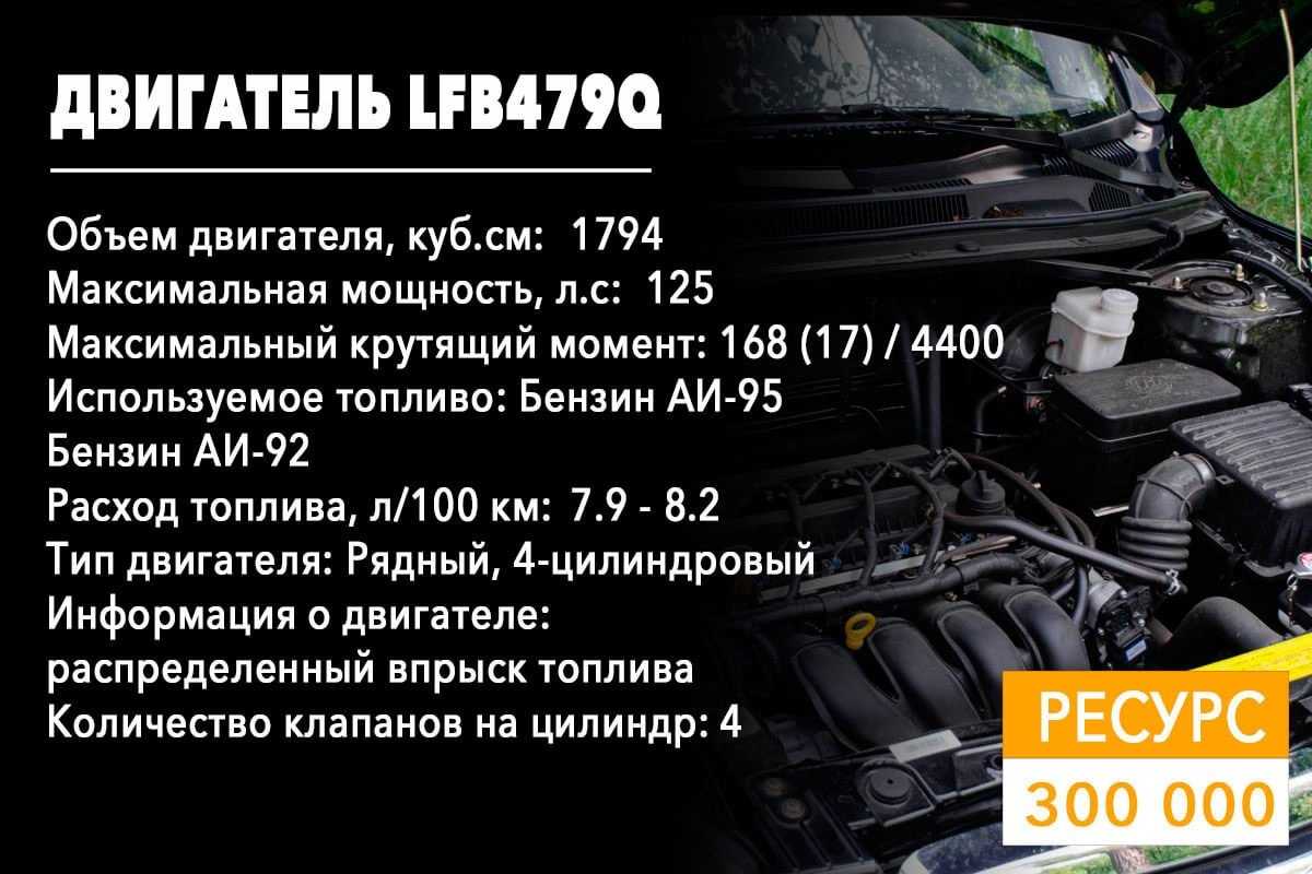 Двигатель объемом 1 794 куб. см имеет заводское обозначение LFB479Q. Уровень форсировки агрегата может составлять от 125 до 133 л.с. Этот двигатель хорошо известен по комплектации автомобиля Lifan X60, который является точной копией самой продаваемой модели Toyota RAV4 японского автопроизводителя. Двигатель был оптимизирован известной британской компанией Ricardo. Установка LFB479Q сильно напоминает установку Toyota 1ZZ-FE. Однако китайская версия двигателя получила совершенно другое программное обеспечение и претерпела некоторые нюансы в компоновке. В результате получился силовой агрегат, который производит 168 Нм крутящего момента при 4 400 об/мин и 125 л.с. при 6 000 об/мин частоты вращения коленчатого вала. В остальном мы имеем два идентичных двигателя — рядный четырехцилиндровый, алюминиевая 16-клапанная головка скрывает именно этот блок цилиндров. Остаются такие технологические системы, как распределенный впрыск топлива и система изменения фаз газораспределения VVT.