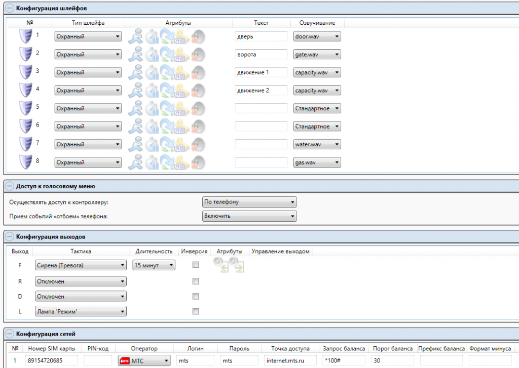 для оповещения используются SMS-сообщения и голосовые звонки. Настройка