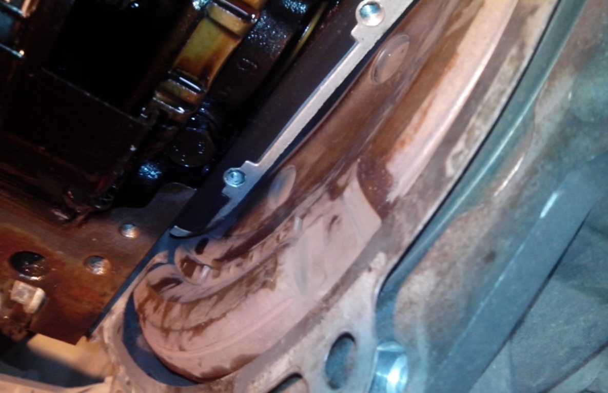 Здесь есть хитрость: на маховике расположен специальный вырез для этого. Поэтому надо немного отпустить болты на коробке, отжав ее от двигателя. Образуется щель, достаточная для ключа. Иногда какой-то из болтов «закисает». Тогда воспользуйтесь ключом на 10, который войдет в образовавшуюся щель.