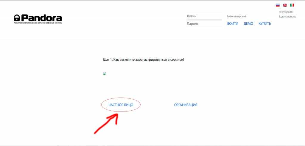 4. Выбираем тип регистрации (организация либо частное лицо).