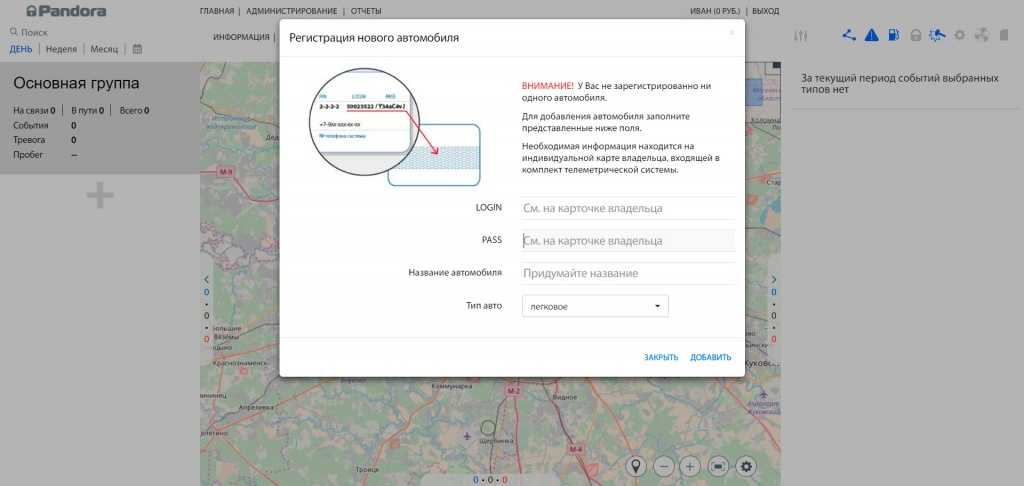 10. После успешного входа в систему, Вы увидите перед собой окно, где будут отображаться все текущие данные по авто и сигнализации.