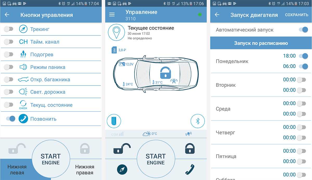 Управляйте охранной системой без дополнительного брелка, включайте трекинг, запускайте двигатель.