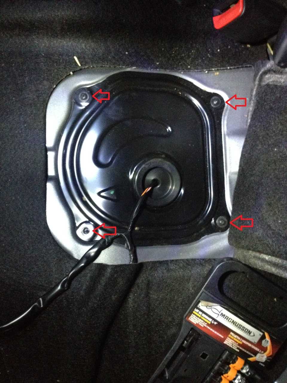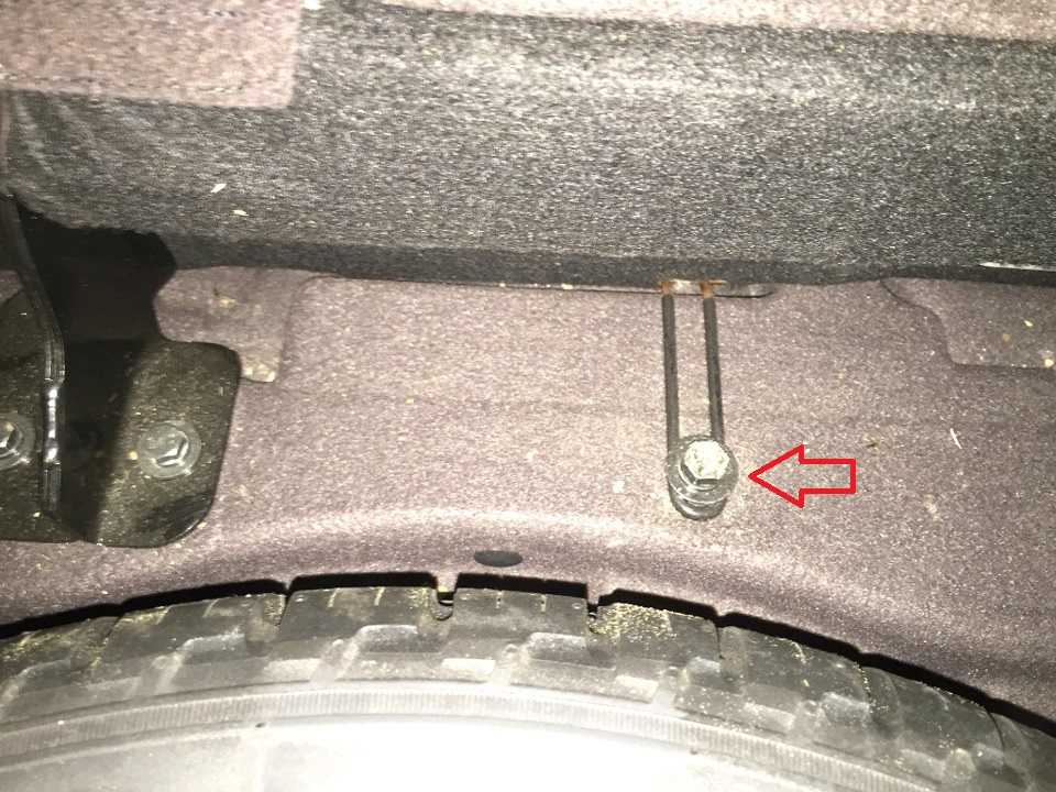 1. Откройте багажник, поднимите полку в багажнике где находится запаска и открутите болт крепления задней сидушки.