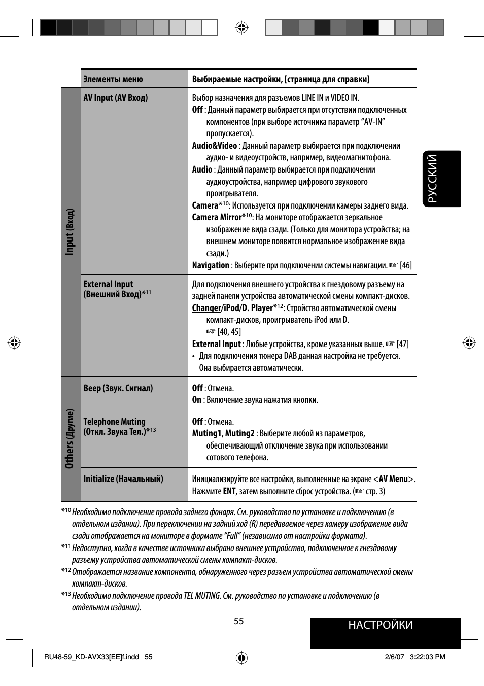 Настройки, Руcckий, Input