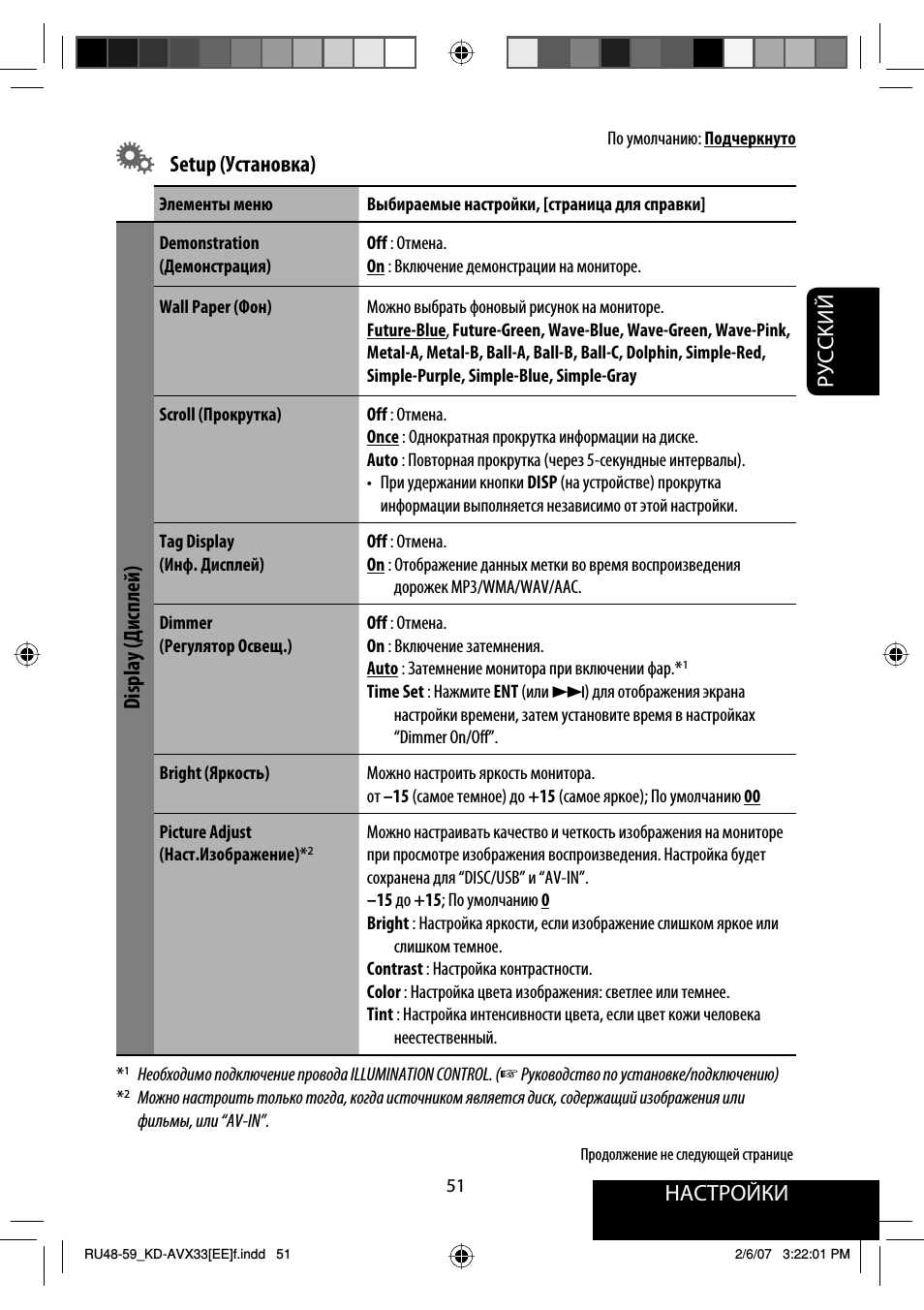Настройки, Руcckий, Setup (установка)