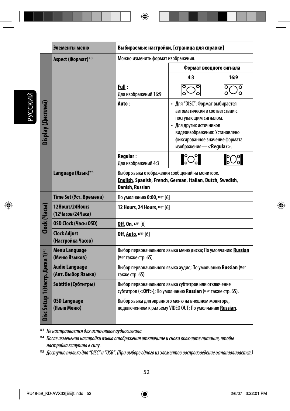 Эта настройка не действует для MPEG1/MPEG2 и DivX со звуковой дорожкой MP3.