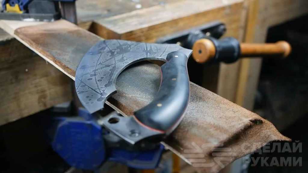Этот этап не обязательный, но если хотите, чтобы ваш походный нож-топорик выглядел оригинально, то можно немного заморочиться.