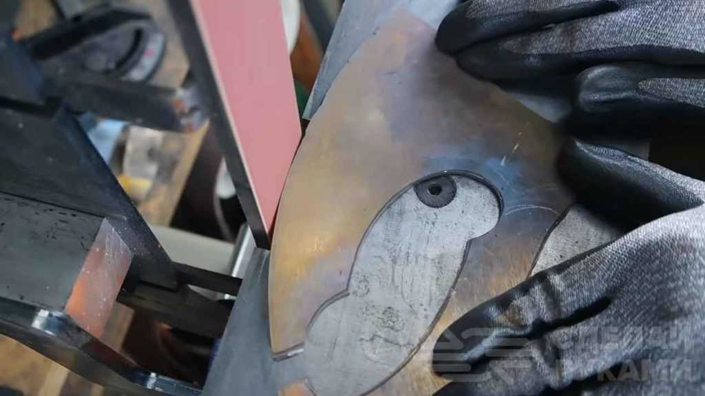 После того как вырезали заготовку, обрабатываем ее на шлифовальном станке — убираем все неровности.