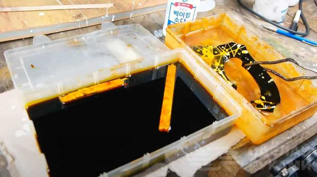 После этого делаем химическое травление металла.
