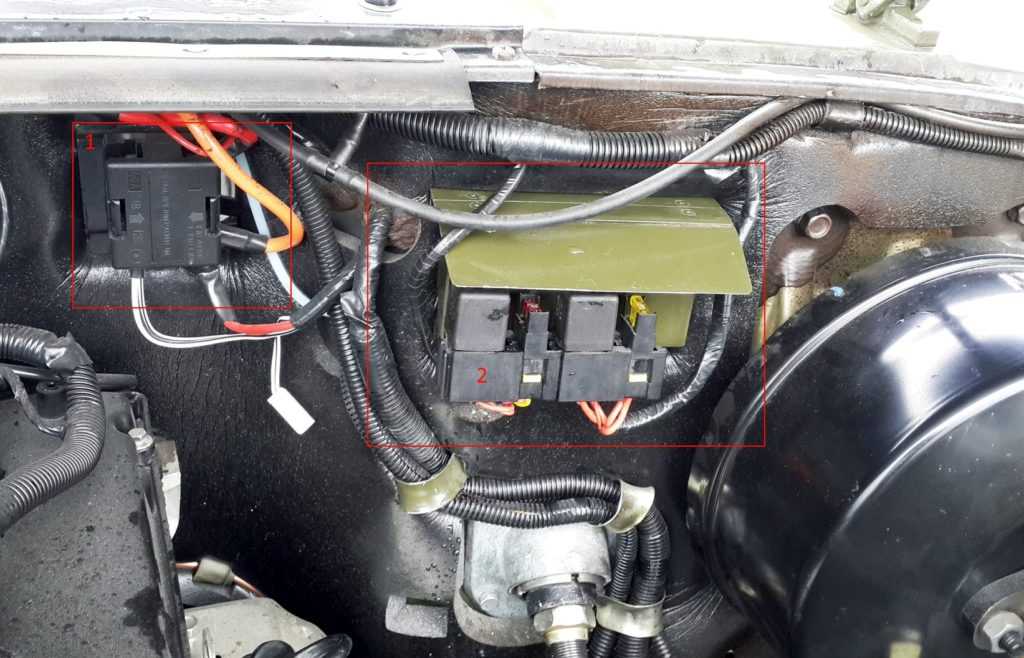 - Найти на щитке отсека силового агрегата блок силовых изделий;