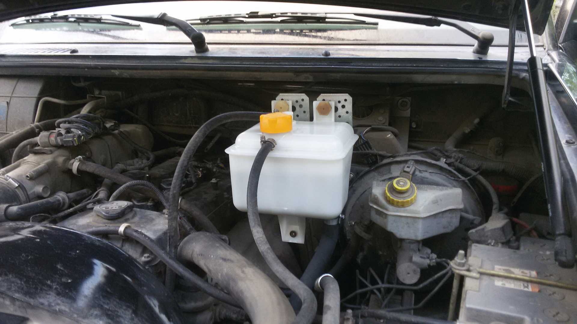 - В конце по желанию можно покрасить рамку и установить расширительный бачок, после чего подключаются все шланги. На таком баке крышка гораздо надежнее и не даст антифризу вытекать из-под горловины.