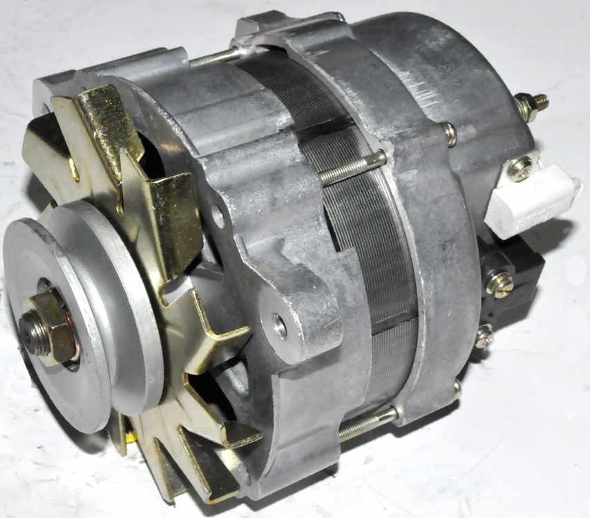 Схема подключения генератора очень проста – на задней крышке устройства находится клемма, на которое подается питание от аккумулятора (+12 Вольт). К корпусу подсоединяется минусовой провод, на щеточный узел подается напряжение для возбуждения ротора.