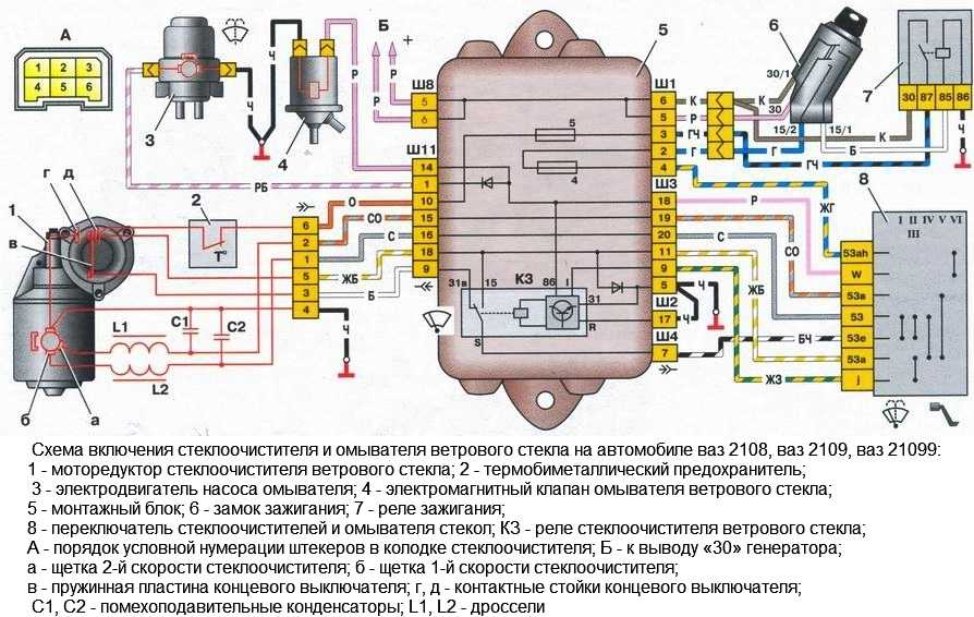 Схема включения стеклоочистителя и омывателя ветрового стекла