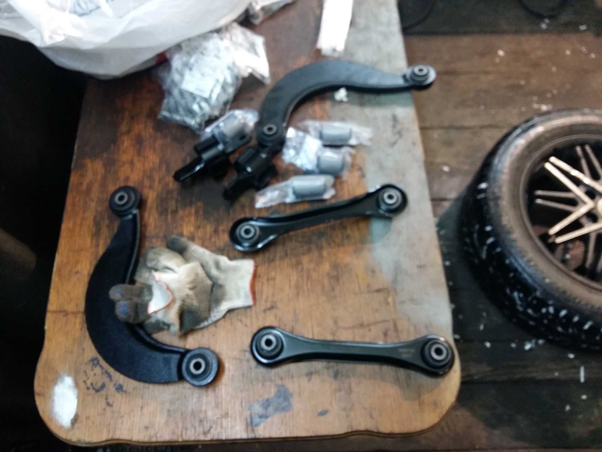 Обе стойки, одна из которых до этого была установлена справа, другая слева на передней подвеске автомобиля, изображены на нижней фотографии общим планом: