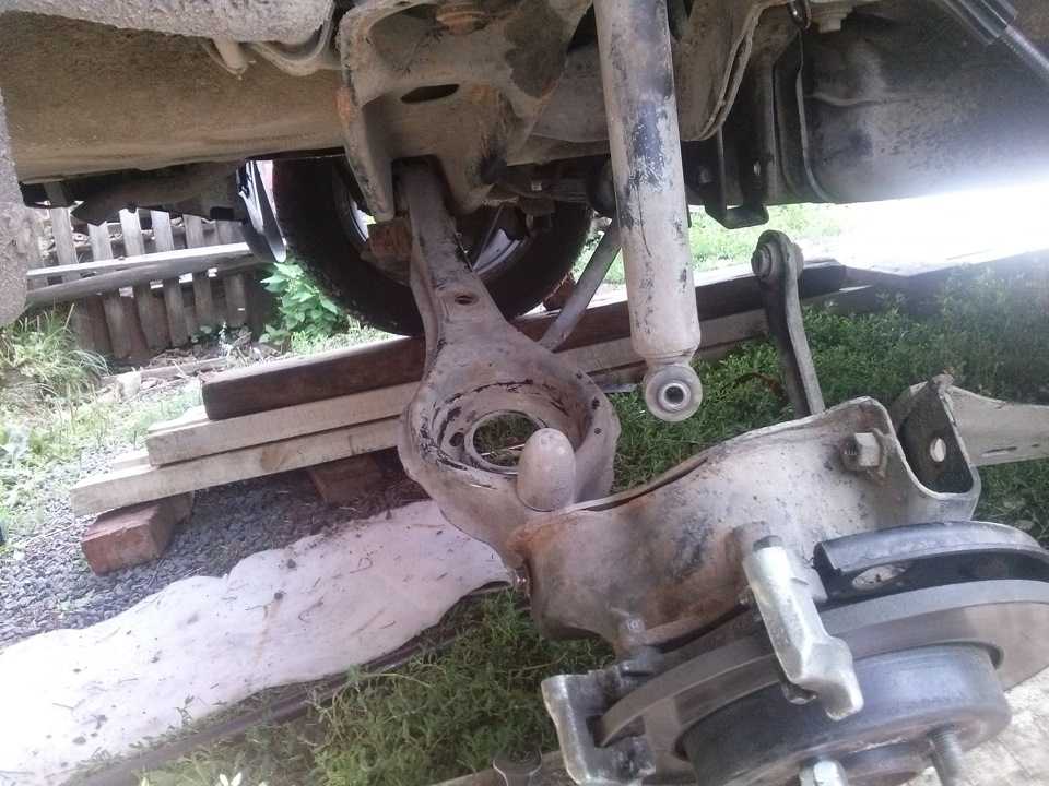- убрать колеса около той стойки, чью втулку собираетесь заменить;