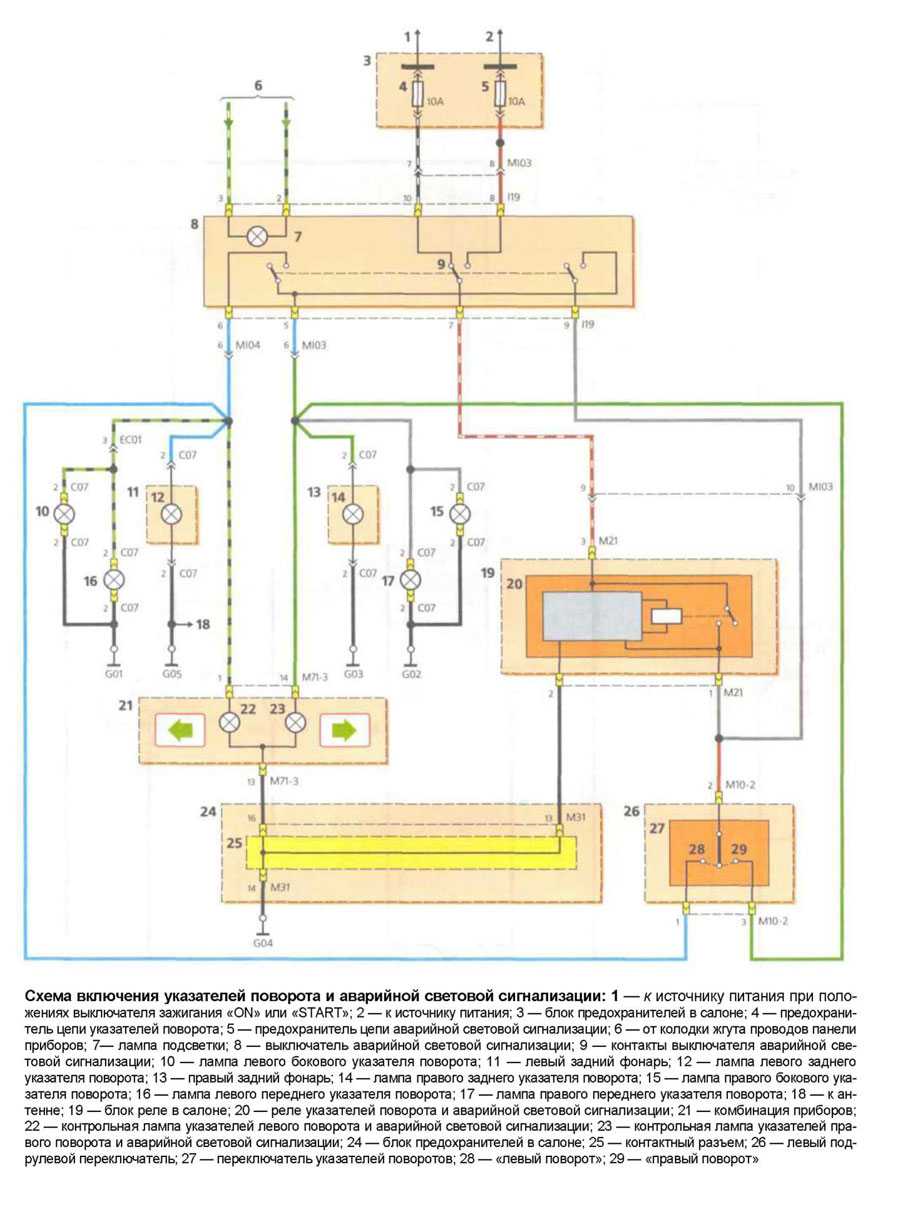 - Схема включения указателей поворота и аварийной сигнализиции.