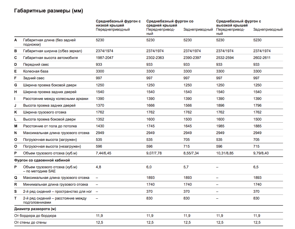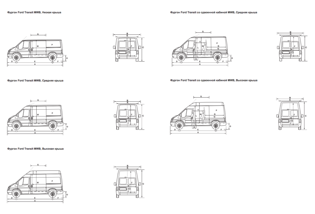 На странице представлены габариты Ford Transit (размеры Форд Транзит: длина, ширина, высота).